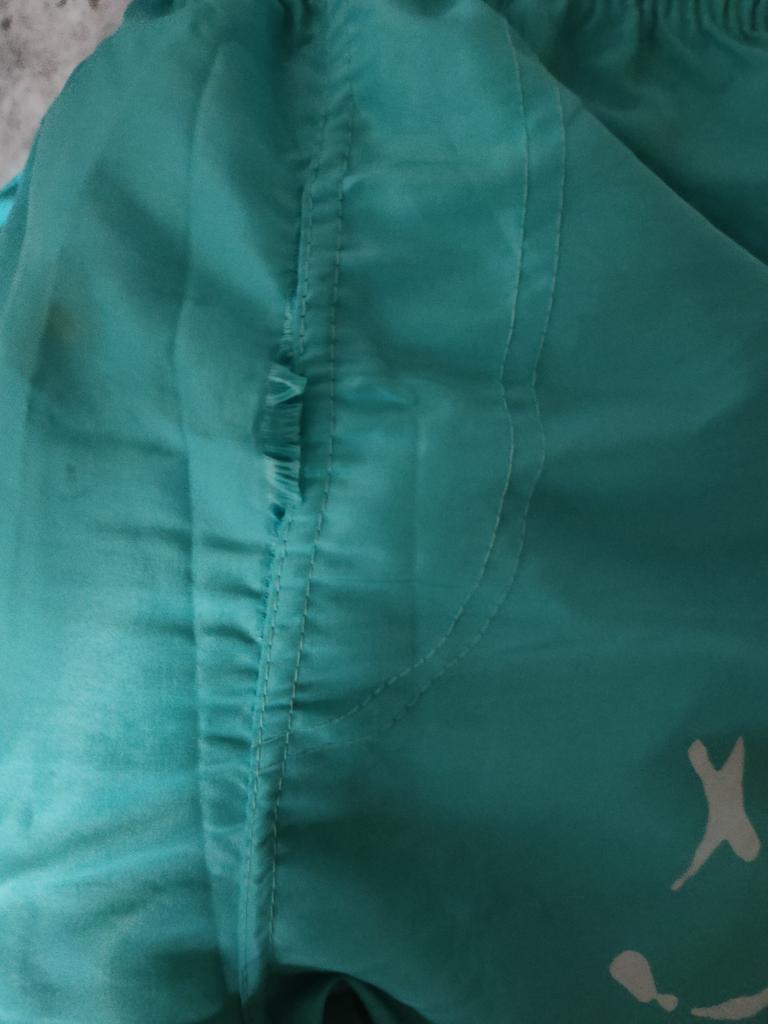 The swimming shorts are good, but they forgot to sew in the mesh bottoms and now we don't know what to do with them.