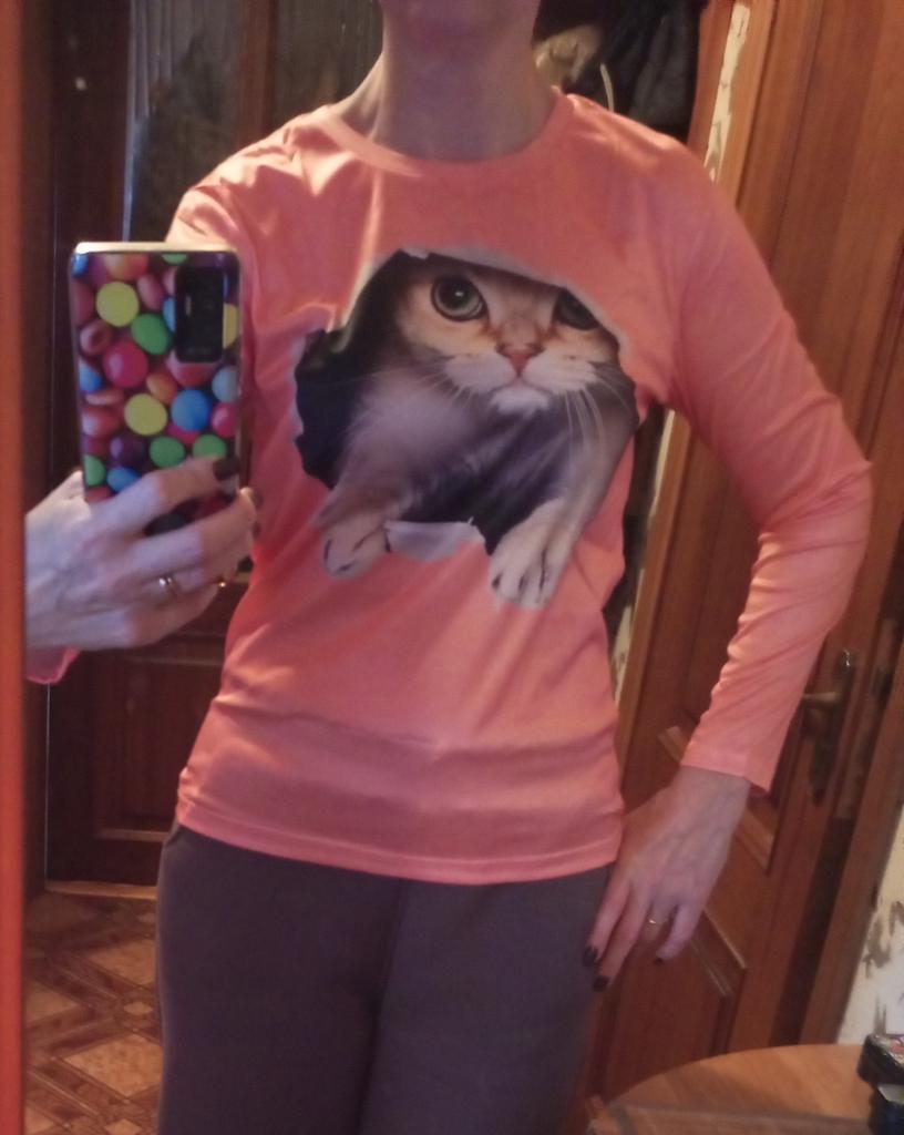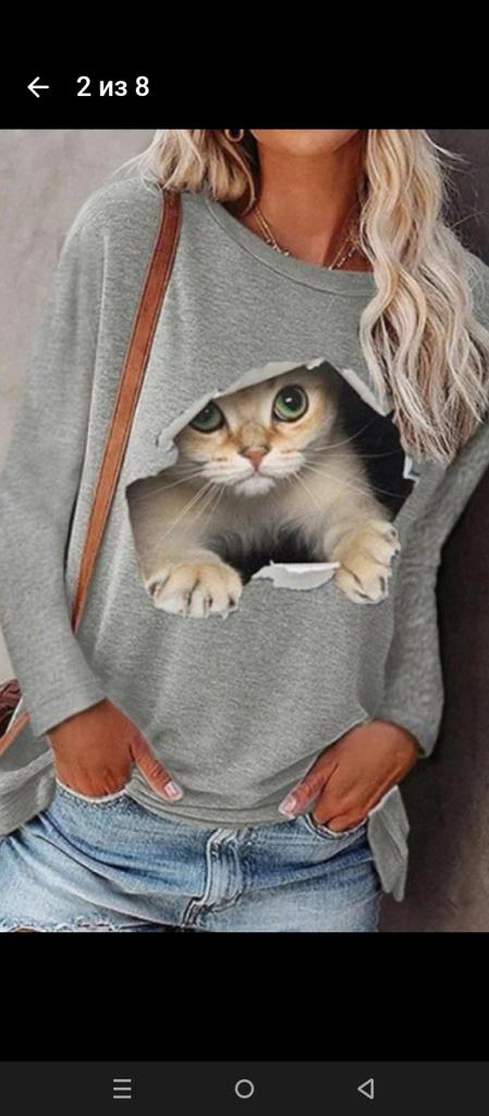 Fashionable Women's Round Neck Pullover Long Sleeve T-shirt Trendy Autumn/winter Cat Design Independent Station On Amazon