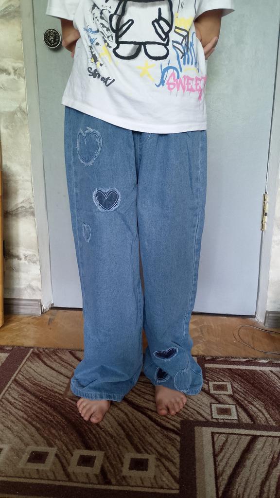 Fashion Teenager Girls Denim Wide Leg Pants Blue Children Trousers Spring Autumn Love Pattern Girls Jeans Kids Clothes Girl