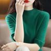 Spring/Winter Short Sleeve Sweater Women's Half Turtleneck Short Loose Five Points Half Sleeve T-Shirt Versatile Knitted Bottoming Shirt Women's Top