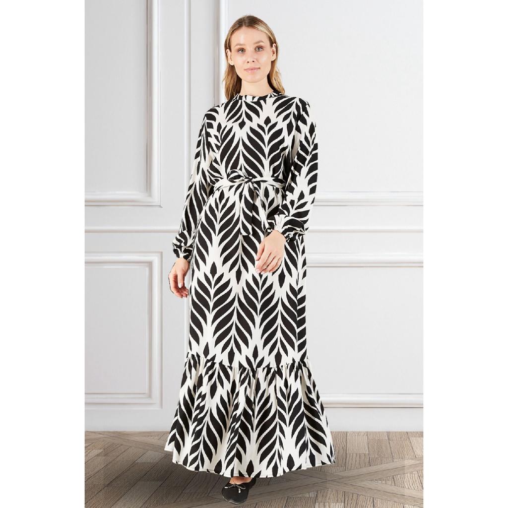 Women's Magnificent Collar Plus Size Dress Hijab Viscose Fabric Pleated And Pleated Dress