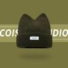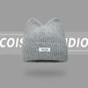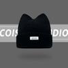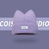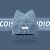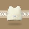 Korean Version New Cute Cat Ear Letter Patch Knitted Hat Women's Autumn and Winter Thickened Warm Versatile Simple Beanie Cap