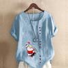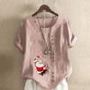 Women's Fashion Santa Claus Prined Round Neck Short Sleeve T-shirt Casual Cotton Linen Graphic Shirt Leisure Loose Summer Blouse Tops