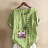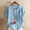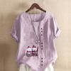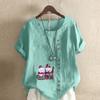 Women's Fashion Round Neck Short Sleeve T-shirt Casual Cotton Linen Graphic Shirt Leisure Loose Snowmen Prined Summer Blouse Tops
