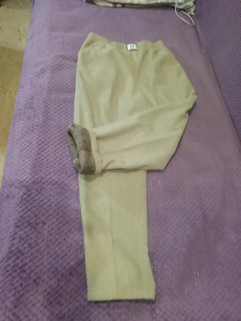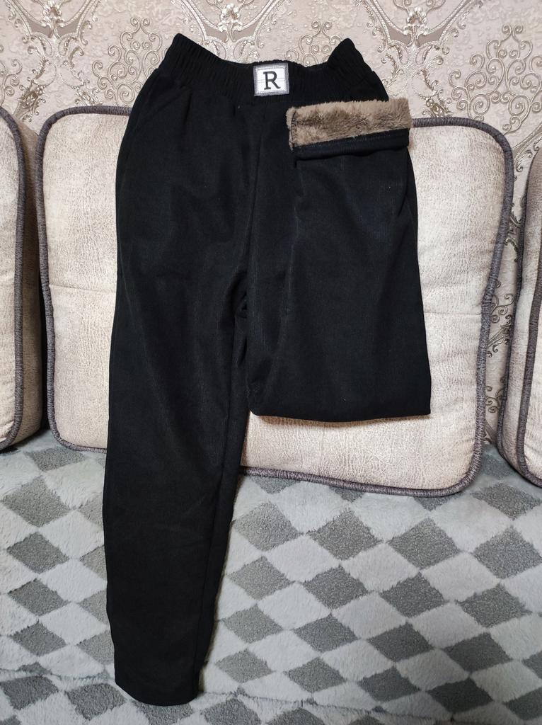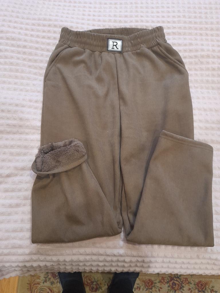 Winter trousers: top - soft and fine corduroy, lining - like fleece, tapered trousers.