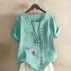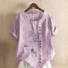 Women's Fashion Owl Prined Round Neck Short Sleeve T-shirt Casual Cotton Linen Graphic Shirt Leisure Loose Summer Blouse Tops
