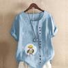 Women's Fashion Owl Prined Short Sleeve T-shirt Loose Cotton Shirt Casual Loose Summer Blouse Tops Plus Size