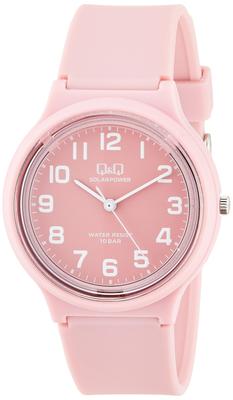 Citizen Analog Solar Water Resistant To 10 Urethane No Battery Replacement Simple Pink Q&Q Men's Watch, ATM, Strap, Required, Lightweight,