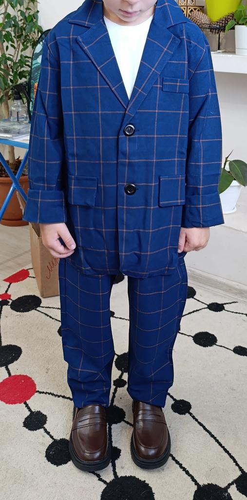 The suit is not bad, the trousers have an elastic waistband, but note that the color is bright blue.