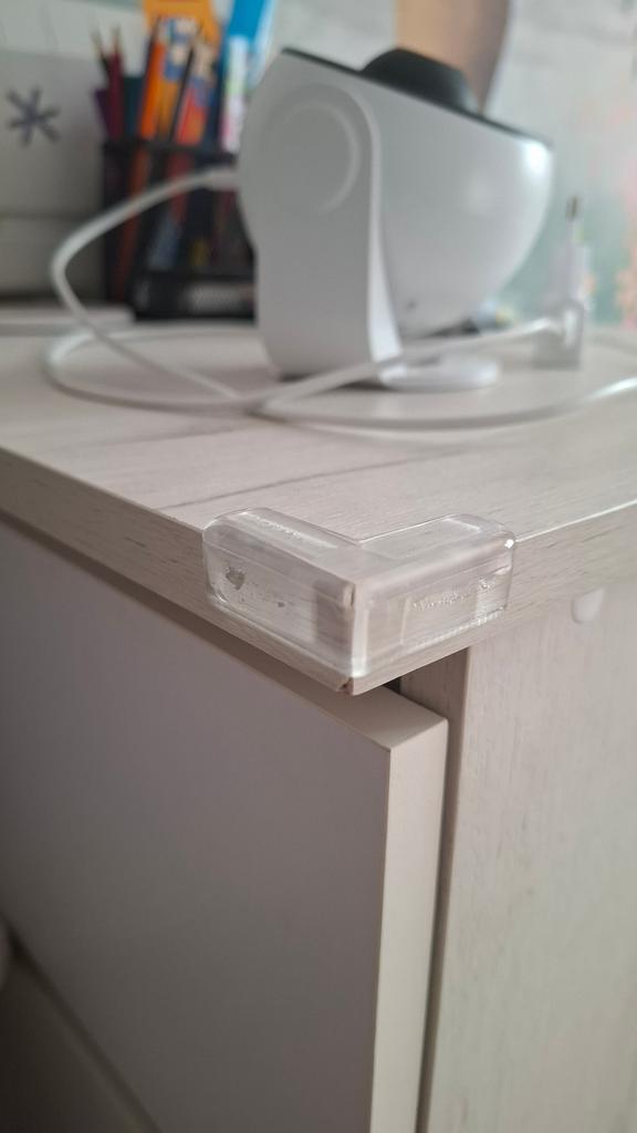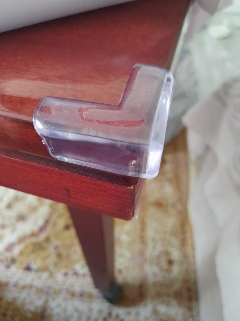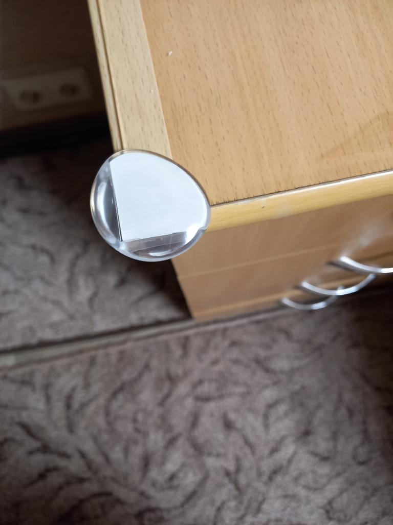 Ordered July 25. Arrived August 14. Received August 15. The order arrived with a badly dented box and packages. Fortunately, the product itself was not damaged anywhere. Fortunately. I stuck the corner protector on the corner of the shoe cabinet. Because I had experience of losing consciousness and falling face-first onto this corner. Thank God it only resulted in a knocked-out implant. It could have been worse. To prevent something like this from happening again. In case the situation repeats, to ensure it is as injury-free as possible. So that it cushions the impact in case of a fall.