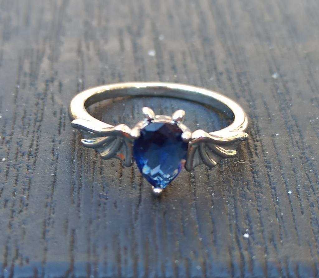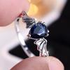 Simple Fashion Blue Water Drop Zircon Bat Finger Rings for Women Silver Color Party Jewelry Holiday Gifts