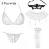 5Pcs Sexy Erotic Lingerie Sets!Lace Bra Set Garter Belt Whit Stockings Set for Women,Lace Bra+Panties +Stockings +Garter Belt Suspenders Lingerie Sets