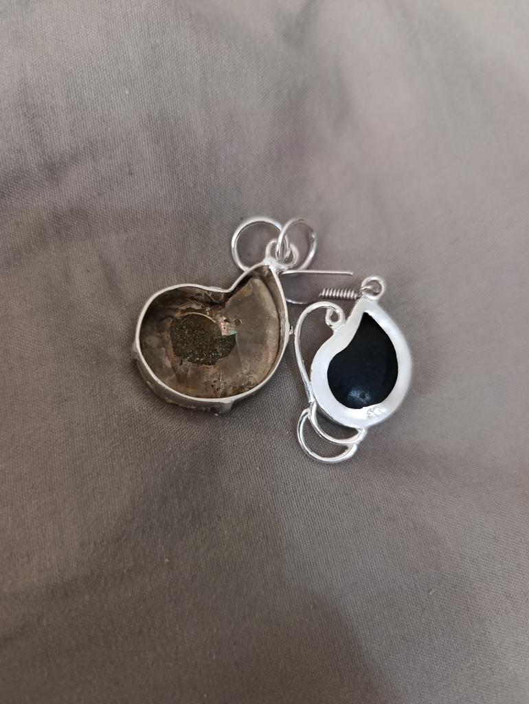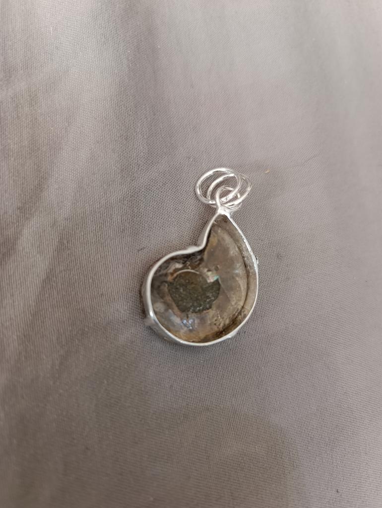 Natural Ammonite Fossil Gemstone 925 Sterling Silver Jewelry Pendant 2.01" A1u89