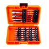 35Pcs: PH1, PH2, PH3, H3, H4, H5, H6, T10*2, T15, T20, T25, T30, T40, SQ1, SQ2, SQ3, 4567mm Slotted Bits, Impact Bits*3, Single Head NonSlip*3, Connecting Rod, 8*42 Socket, 65100mm, TT10PH2H4H5 100mm Bits