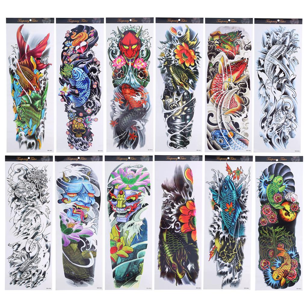 12pcs Fake Tattoo Sticker Temporary Waterproof Sweatproof Unisex Full Arm Tattoos Stickers