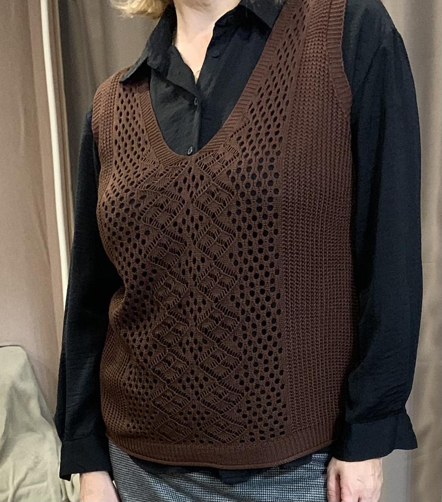 I'm taking the second one already as a decoration for clothing. I combine it with blouses, trousers. The openwork of the vest is very enlivening.