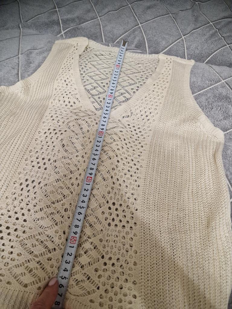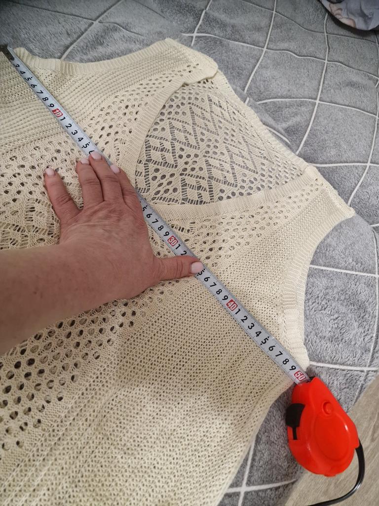 Delicate sleeveless jacket. Size 3XL fits size 52 perfectly. Thank you.