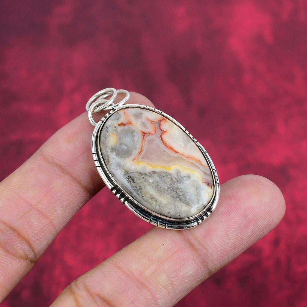 Laguna Lace Agate Pendant, Gemstone Jewelry 925 Solid Sterling Silver Pendant, Gift For Women Handmade Pendant