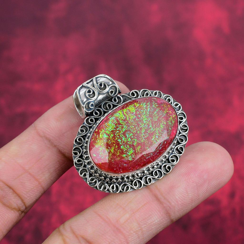 Pink Triplet Opal Jewelry, Gemstone Handmade 925 Solid Sterling Silver Jewelry Pendant, For Wedding Gift