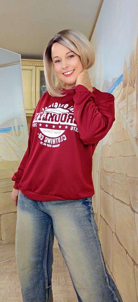 Women's Sweatshirt - Fashionable Autumn Coat without Hood in a Relaxed Fit. Features: - Particularly suitable for the autumn and winter seasons. - Loose fit for maximum comfort. - Young and fashionable style, perfect for an everyday or casual look. - Available in large sizes. A great choice for those looking for a combination of style and comfort.