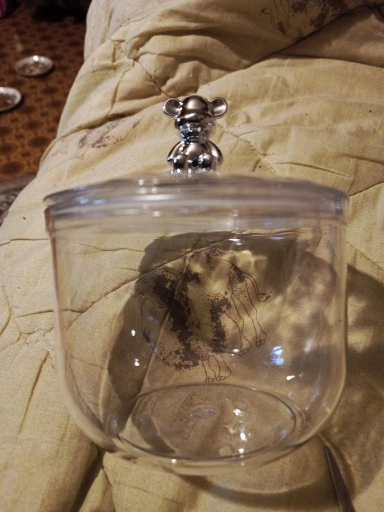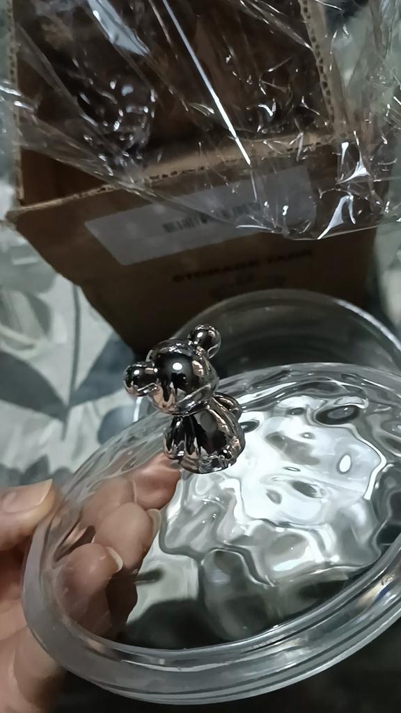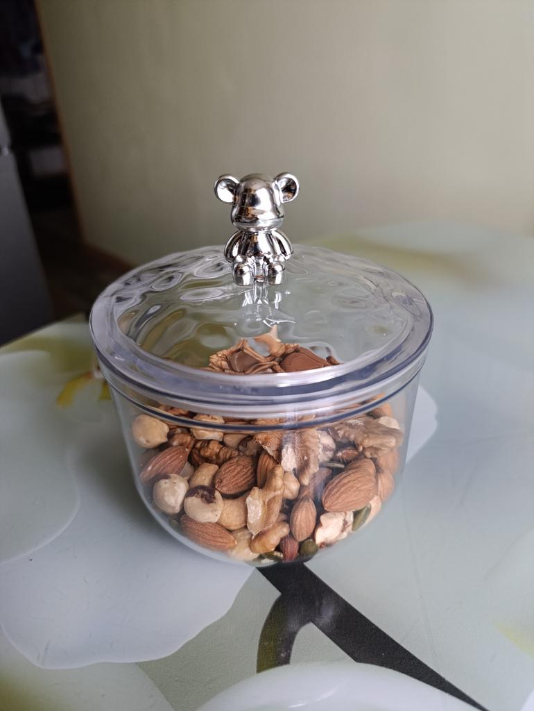 Beautiful jar, the lid with the bear is airtight, very suitable for dried fruits, nuts