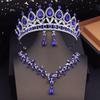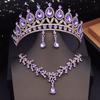 Luxury Purple Bridal Jewelry Sets for Women Choker Necklace Earrings With Crown Wedding Bride Set Costume Accessories