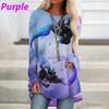 T Shirt For Women Funny Cartoon Cat Digital 3D Printing Colorful Versatile O-Neck Everyday Long Sleeve Leisure Clothing