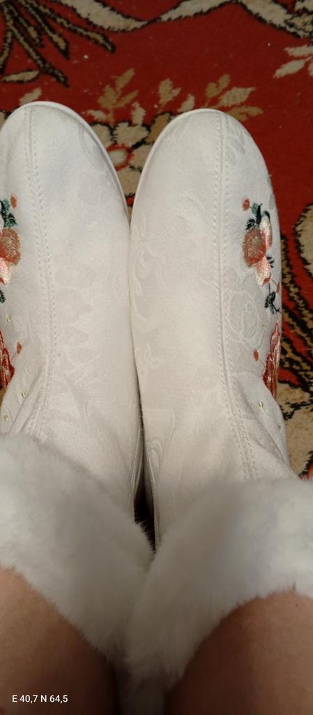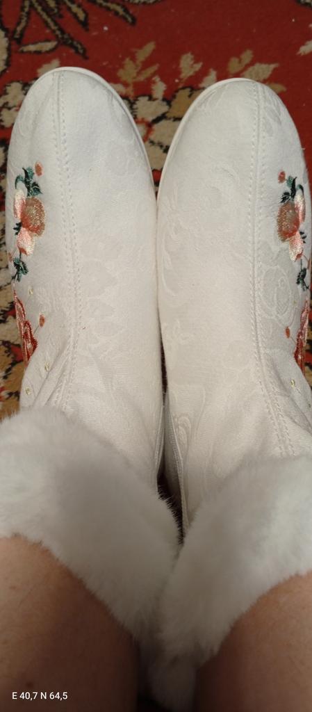 Not at all wintery, the material is ordinary fabric, these are socks with soles. The toe and heel are not reinforced. In the photo I stuffed them with paper, they were all crumpled, the smell is awful 😖👎, they are standing, airing out