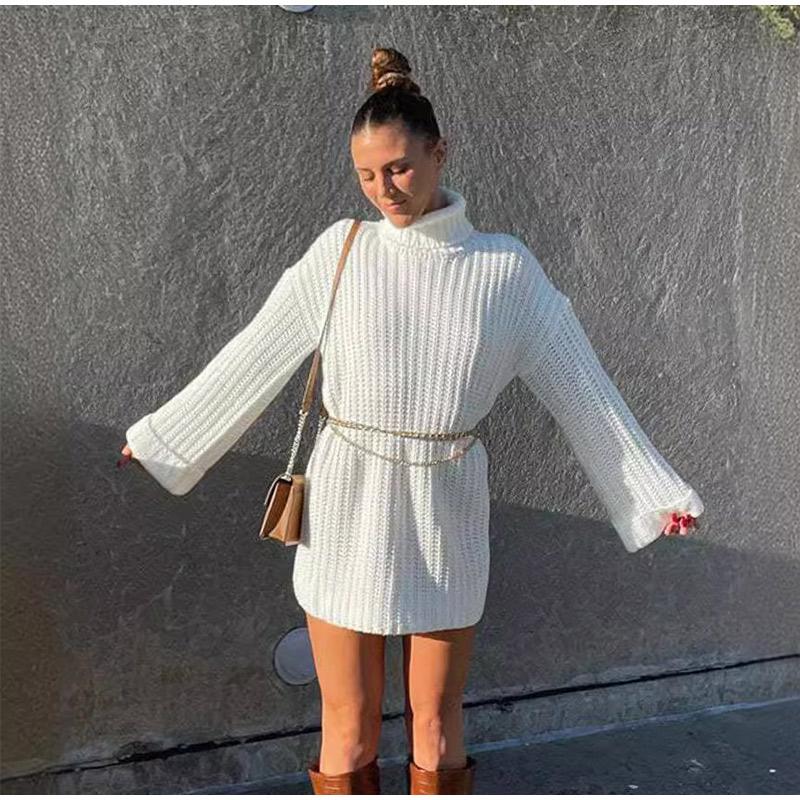 Casual Knitted Pullover Dress Women Turtleneck Long Sleeve Ribbed Female Sweater Autumn Winter Fashion Lady Warm Outwears