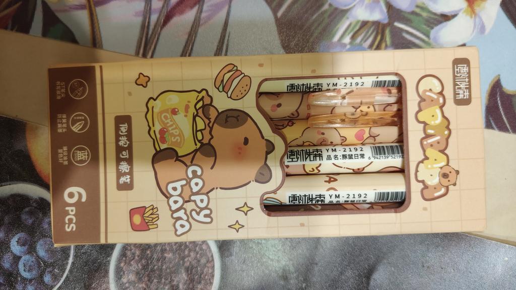 6Pcs Cute Capybara Erasable Pen Blue Ink Writing Smooth Quick-Drying Pens School Office Accessories Students Stationery Gift