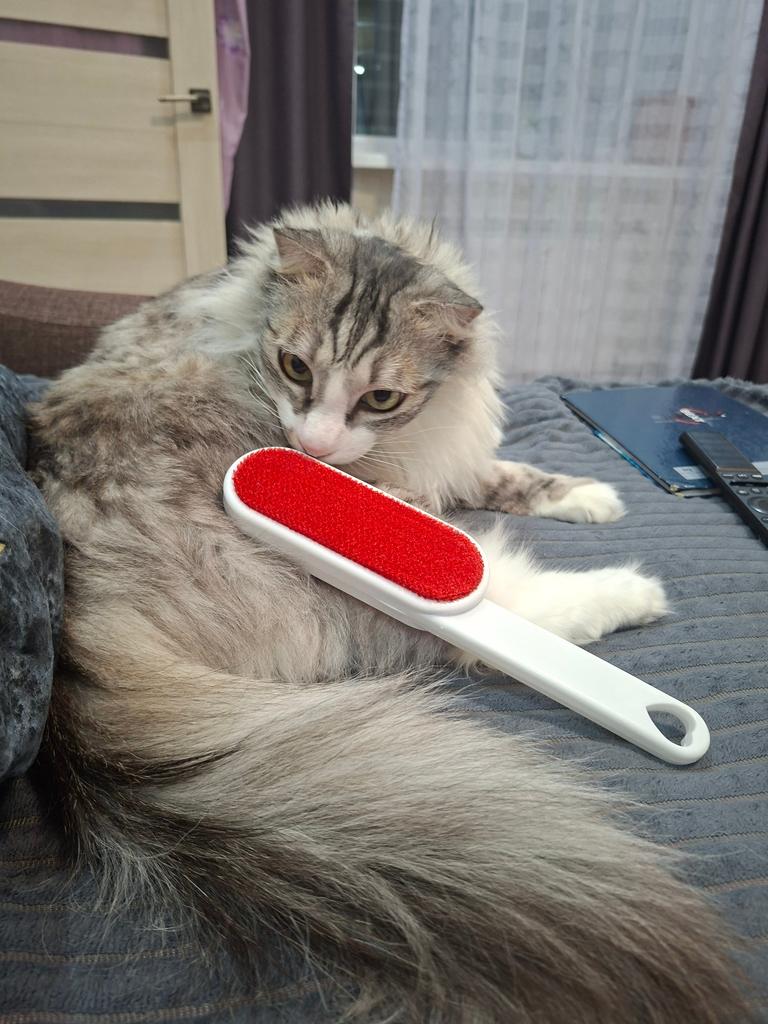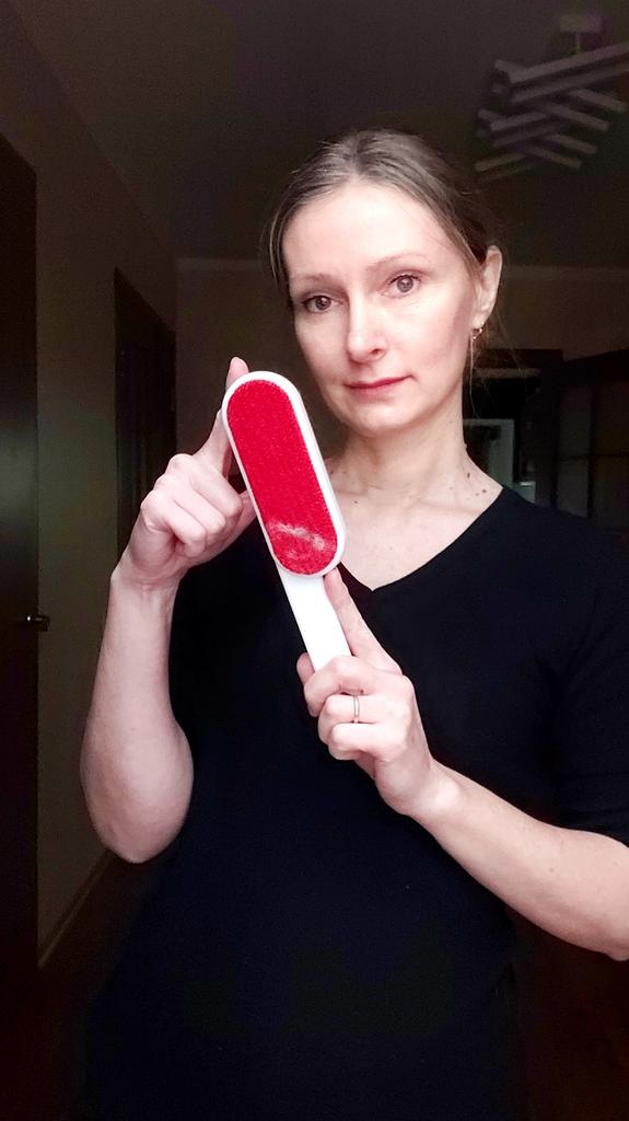Double-sided brush for removing hair from clothes. Thank you! I recommend it to those who have dogs 🦮 👍