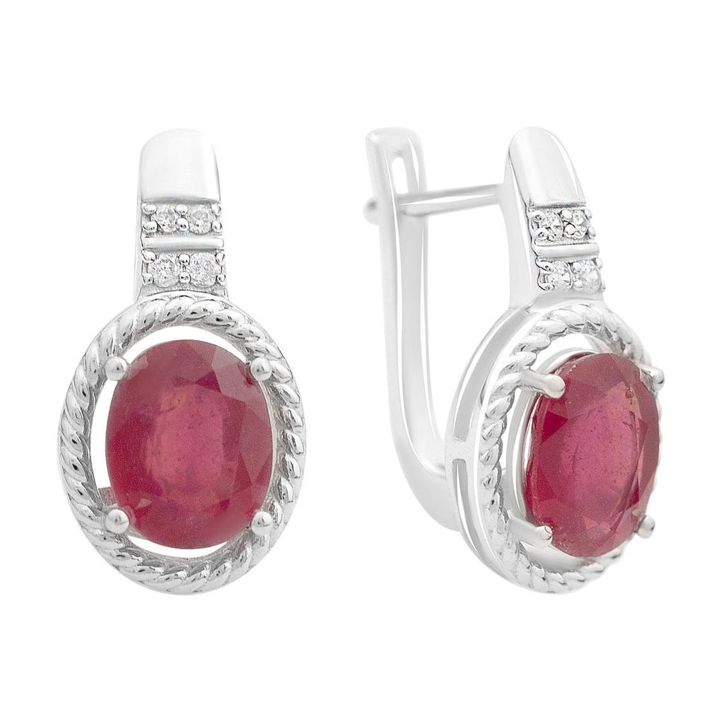 Silver Earrings with Natural Ruby 4.846ct, Cubic Zirconia (2165231)