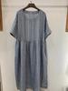Johnature Women Vintage Striped Dress O-Neck Short Sleeve Robes Summer High Waist Women A-Line Dress
