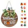1 Set Seasonal Welcome Sign Front Door Decoration, Rustic Round Wood Wreaths Wall Hanging Outdoor, Farmhouse, Porch