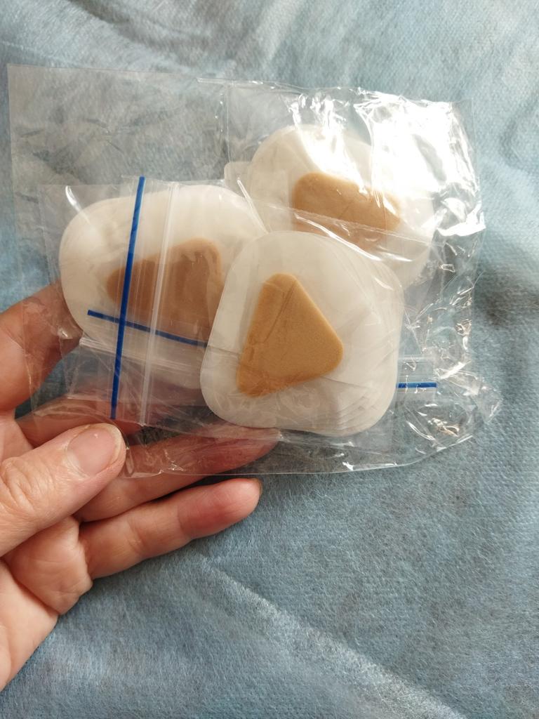 Received, very small, more for a finger than for a heel... 10 pieces.