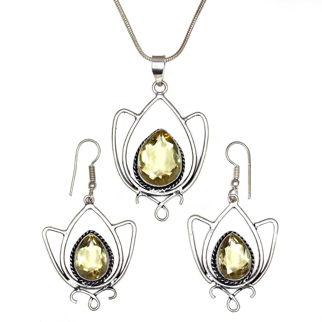 Lemon Topaz Gemstone Mother's Day Jewelry Pendant Earring Set