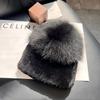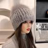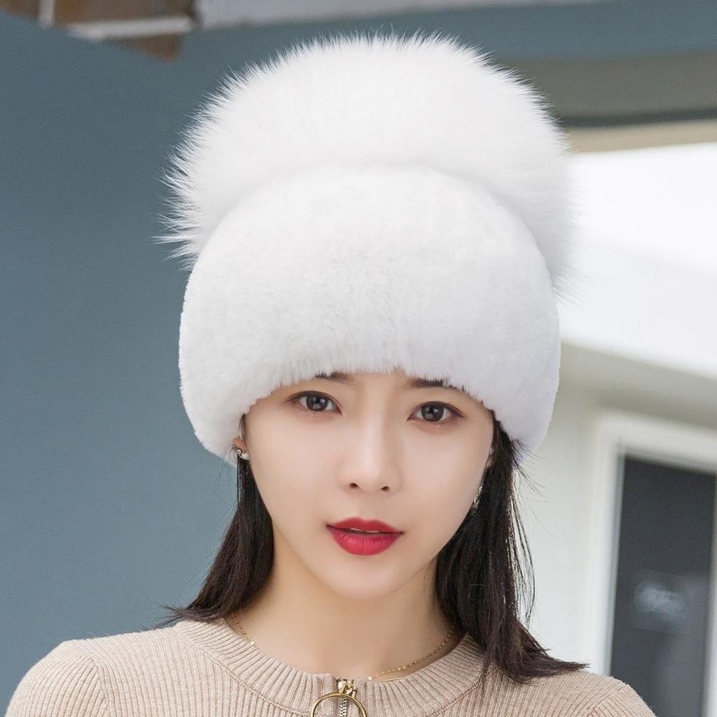 Women Winter Luxury Rabbit Fur Hat Knitted Rex Rabbit Fur Hat Top Fox Fur Cap Genuine Fox Fur Beanies Hat
