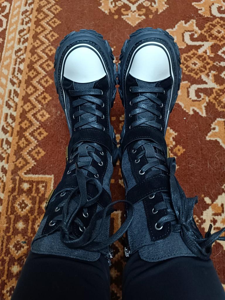 Rock Shoes Woman Luxury Designer Flat Heel Boots-Women Round Toe Fashion Ladies Autumn Med Ankle Slip-On Cotton Fabric Bas
