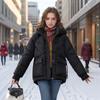 GMXIA Women's Vintage Casual Solid Color Print Autumn Winter Long Sleeve Hooded Jackets & Coats
