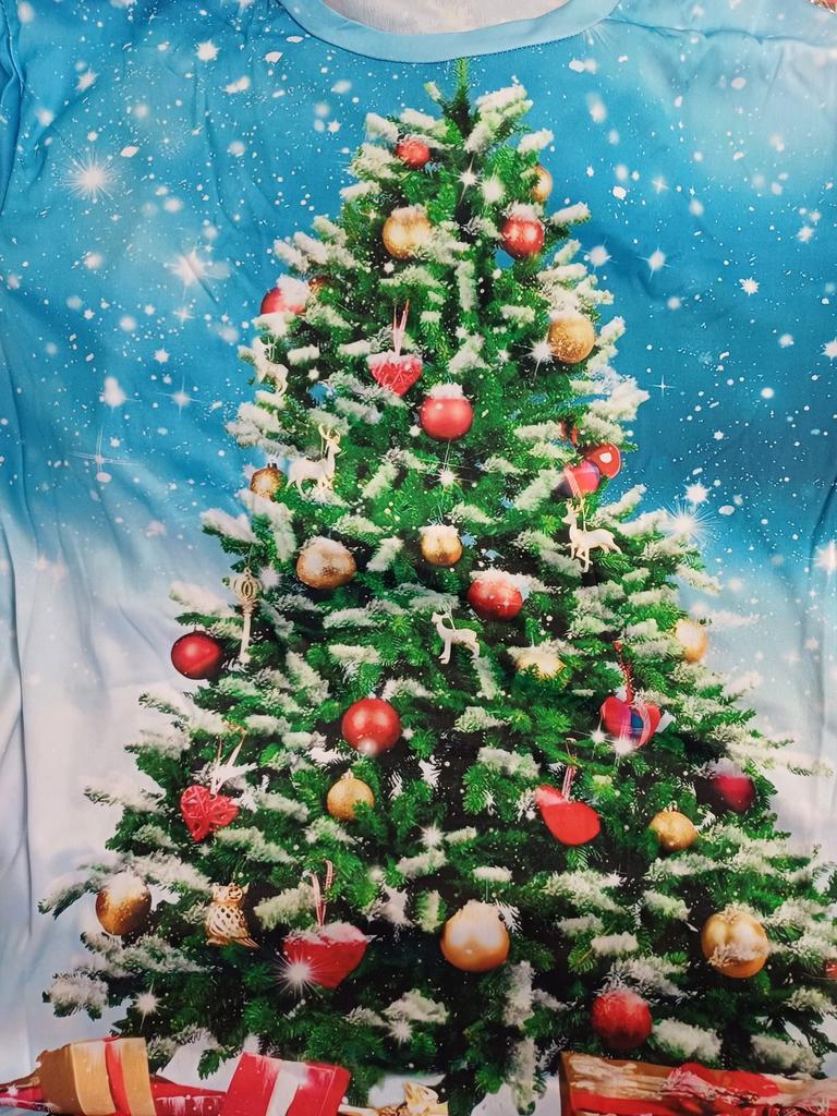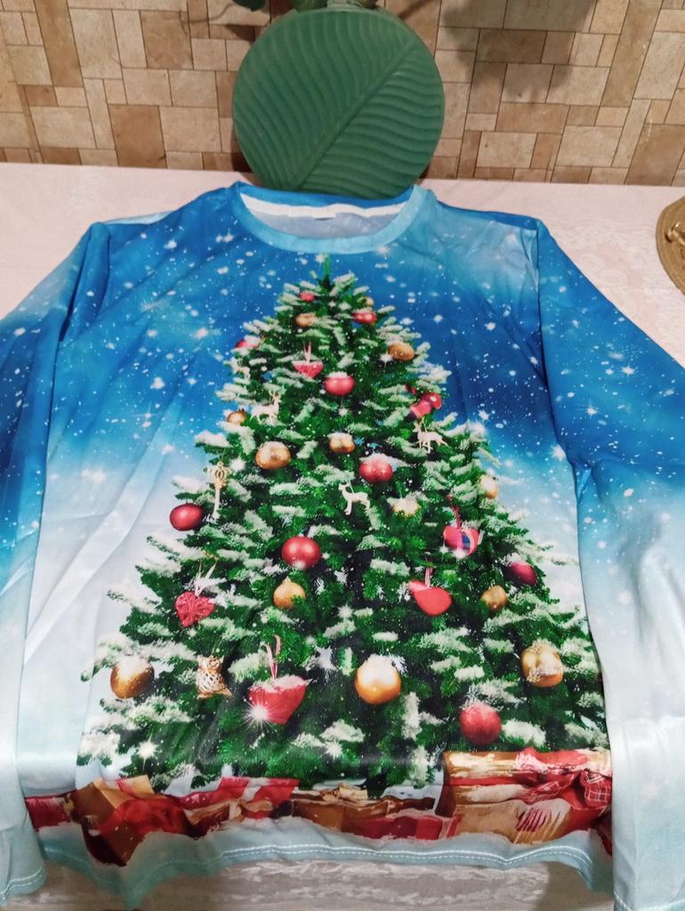 Excellent New Year's top with a fir tree in the forest print. Suitable not only for festive events but also for everyday wear. Great for young people for parties and in educational institutions, looks great!