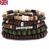 5pcs Set Mens Brown Green Beaded Vintage Retro Wooden Wristband Bangle Bracelet