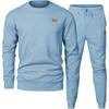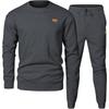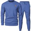 Men's Autumn Winter Solid Color Striped Long Sleeve Round Neck Sweatshirt Trousers Suit