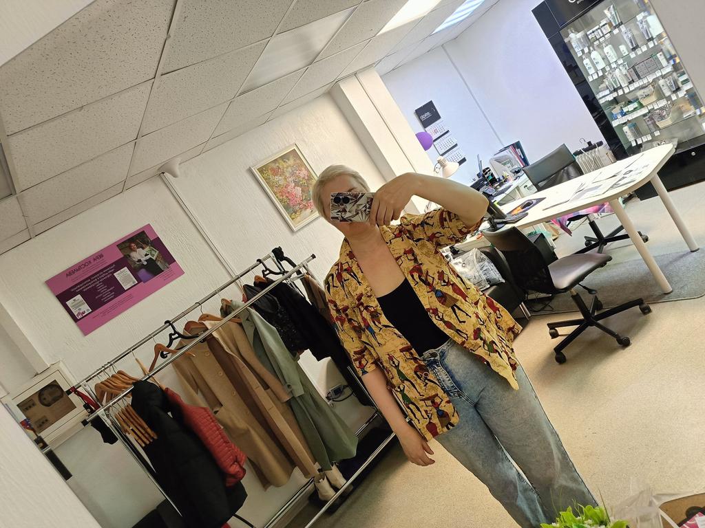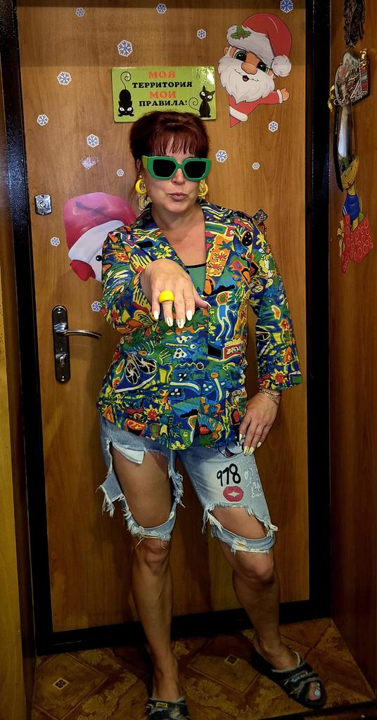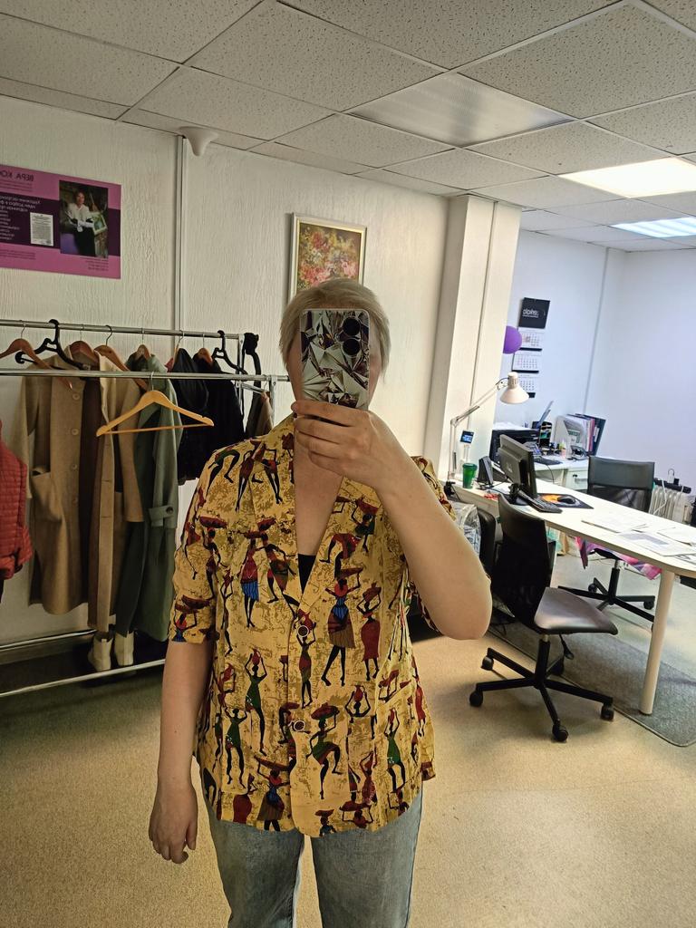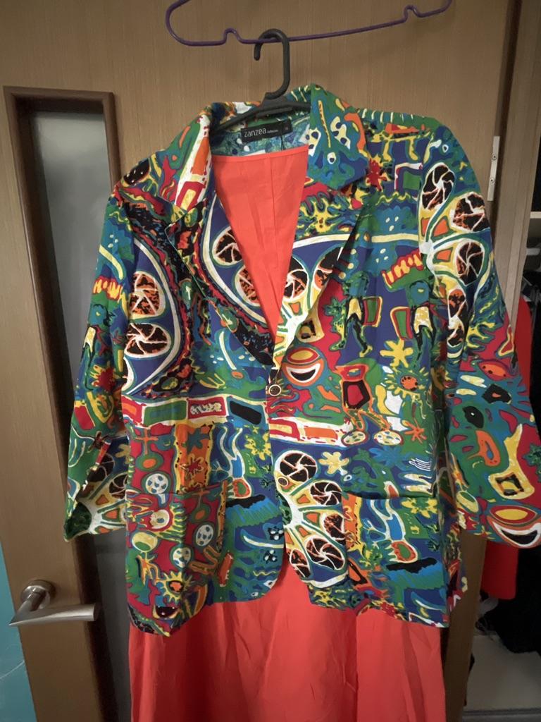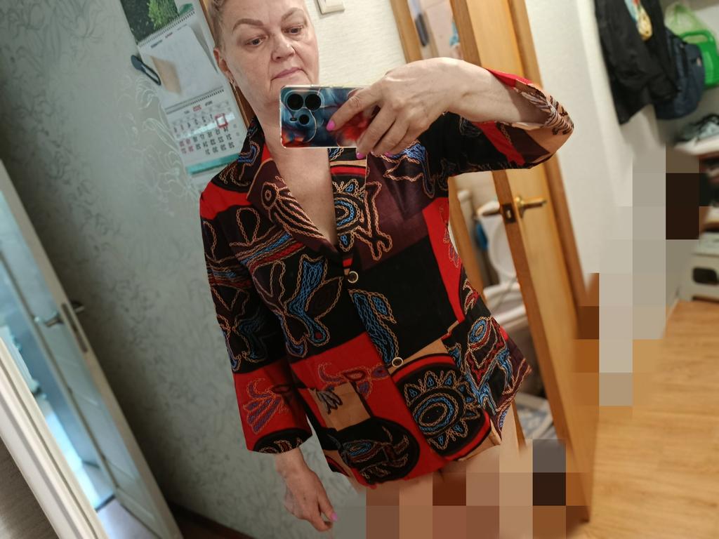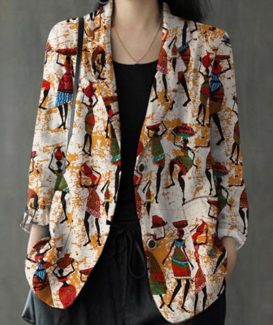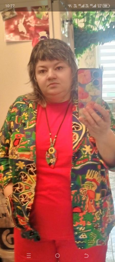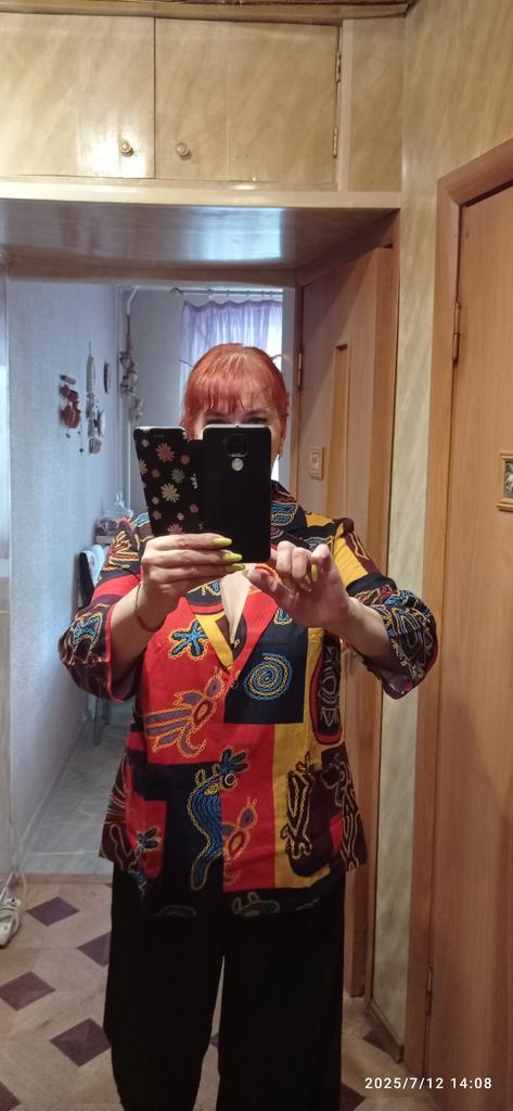 Just a summer jacket, the pattern is bright, matches the photo, the fabric is cotton, but it will need to be adjusted at the waist.