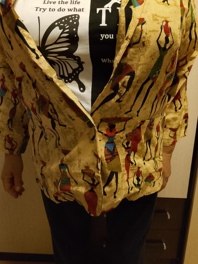 Not a bad summer jacket, without lining. But I didn't like the background color, it's dirty beige, like old newsprint. It gives the impression of old fabric.