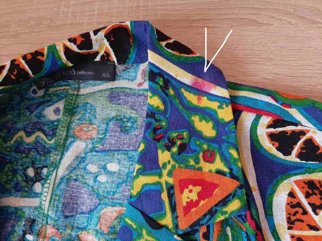 The jacket arrived with a red stain on the collar. I bought it as a gift. Now I don't know what to do with it.