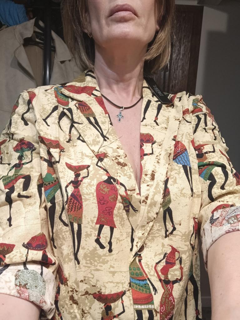 The jacket is well made, but the size is not correct, my chest is 110 and it does not fasten, I will have to wear it open, the fabric is like a grandmother's robe. Very garish, I will wear it in the summer. I add, I have not worn it yet, spring