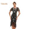 Women's Vintage Sequin Embroidered Dress: Elevate your style with this elegant vintage dress for women. Crafted from high-quality polyester fiber, this dress features exquisite sequin embroidery with stunning color effects. The round-neck design and short sleeves add a touch of sophistication, while the fringed hem exudes a retro charm.