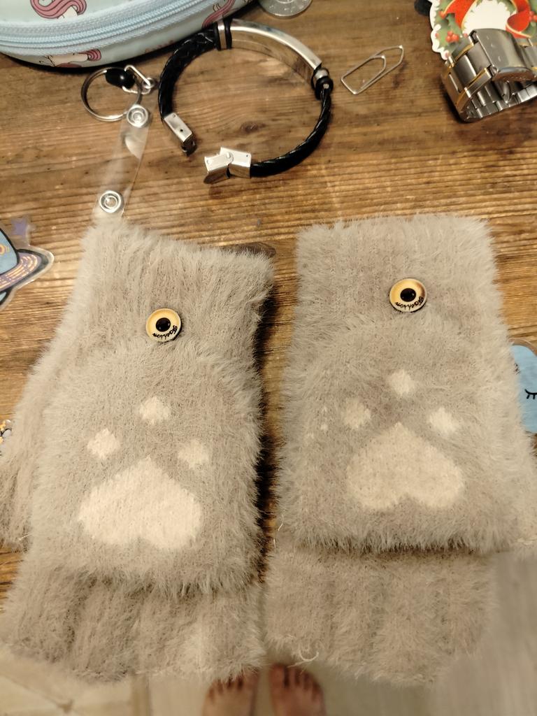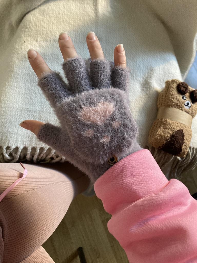 Soft Fuzzy Lined Flip Up Down Top Fingerless Mitten Gloves Cute Aesthetics Winter Warm Gloves