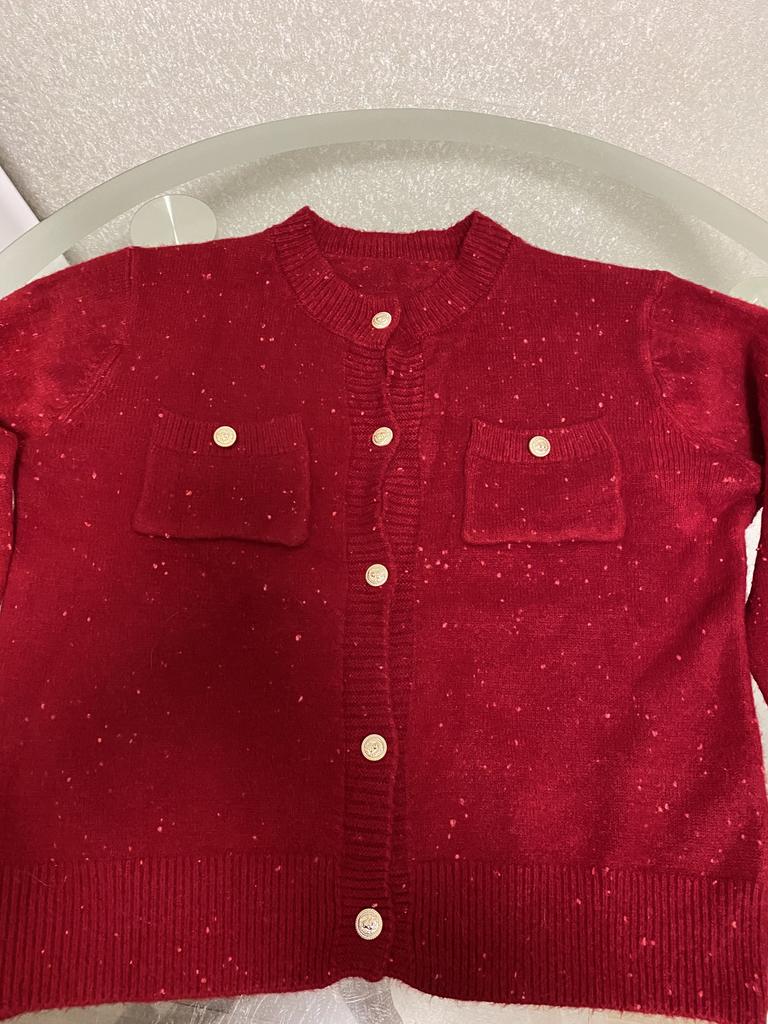 Gentle Atmosphere Sequined Round Neck Sweater Cardigan for Women Spring and Autumn Retro Red Soft and Sticky Knitted Jacket