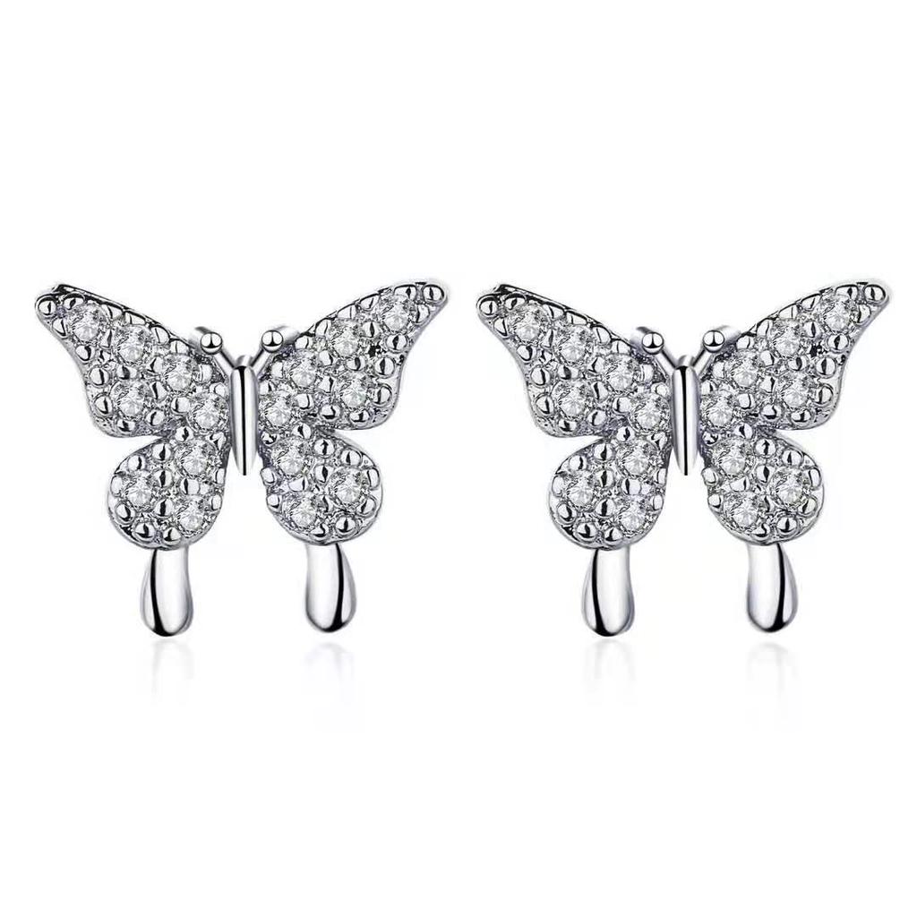New Small Fresh Butterfly Earrings Full of Diamond Earrings Women's Simple, Small and Exquisite Sen Series Women's Earrings